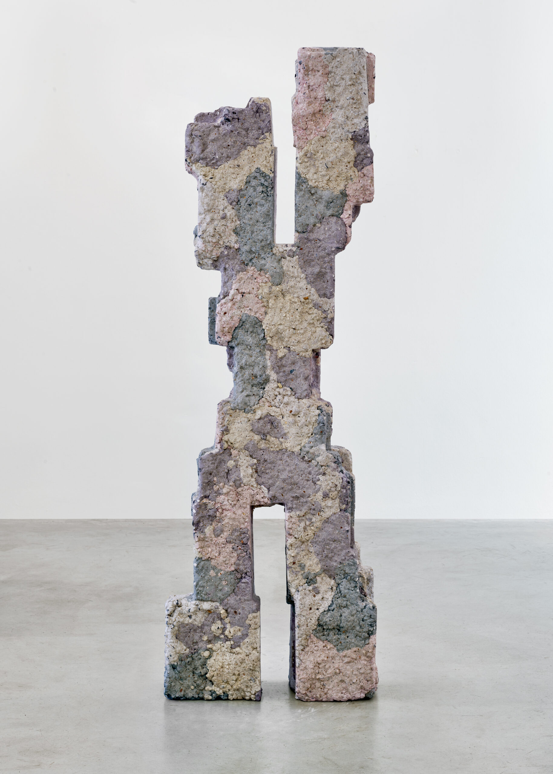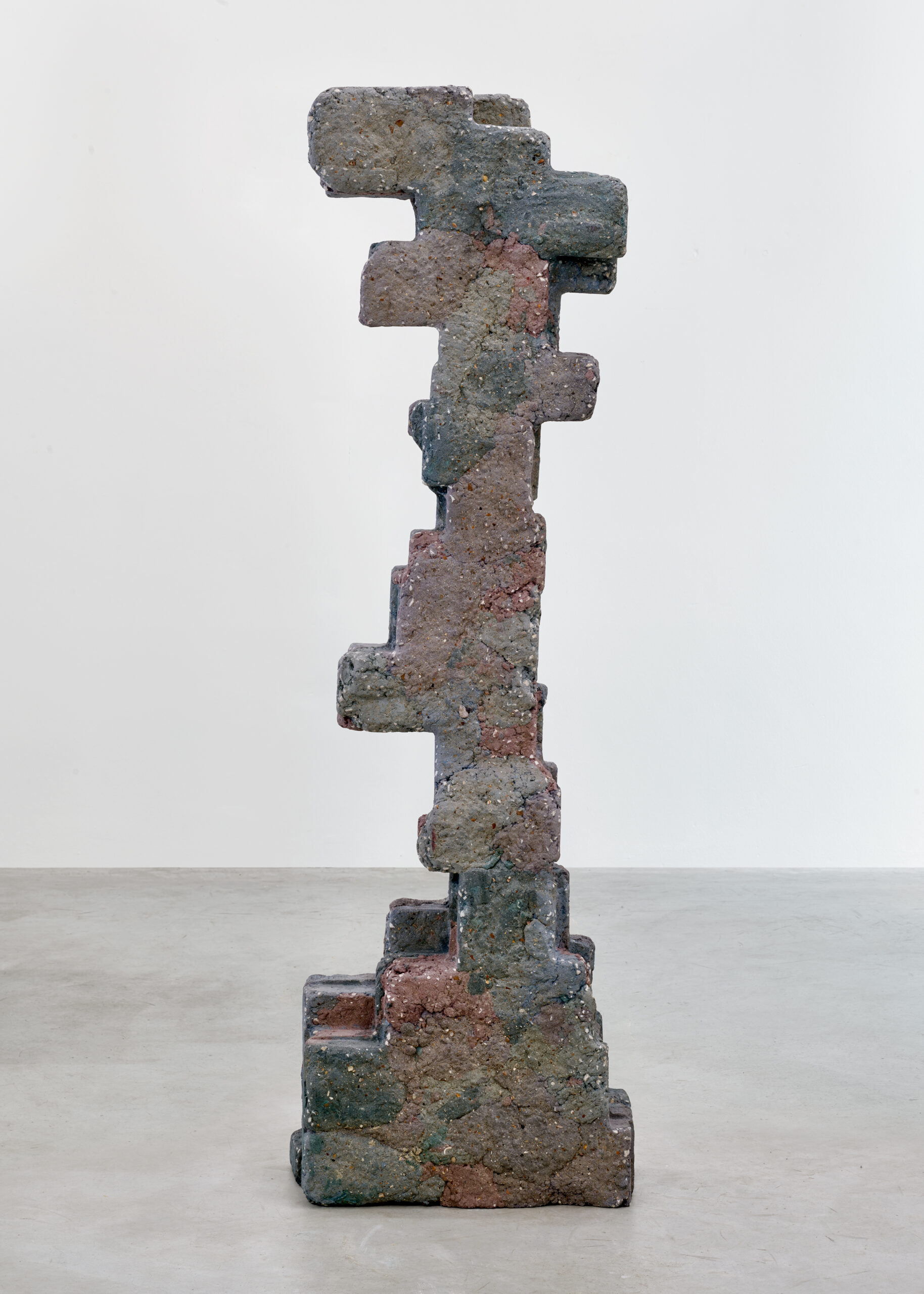 Regular bricks are arranged into both methodical and intuitive compositions on the floor of the working space. In doing so, Bram Vanderbeke creates negative spaces, which are then used as unique moulds for the creation of (abstract and) architectural furniture pieces – benches, stools, side tables or pedestals. This straightforward technique is inspired by the way in which construction workers realize the fundaments for a building. The resulting Casted Objects repeat the rhythm and texture of the brick moulds, including the stones’ raw and grainy surfaces. The prominent seams echo the liberty of the method and introduce a primitivistic aesthetic. Pictures by Pim Top